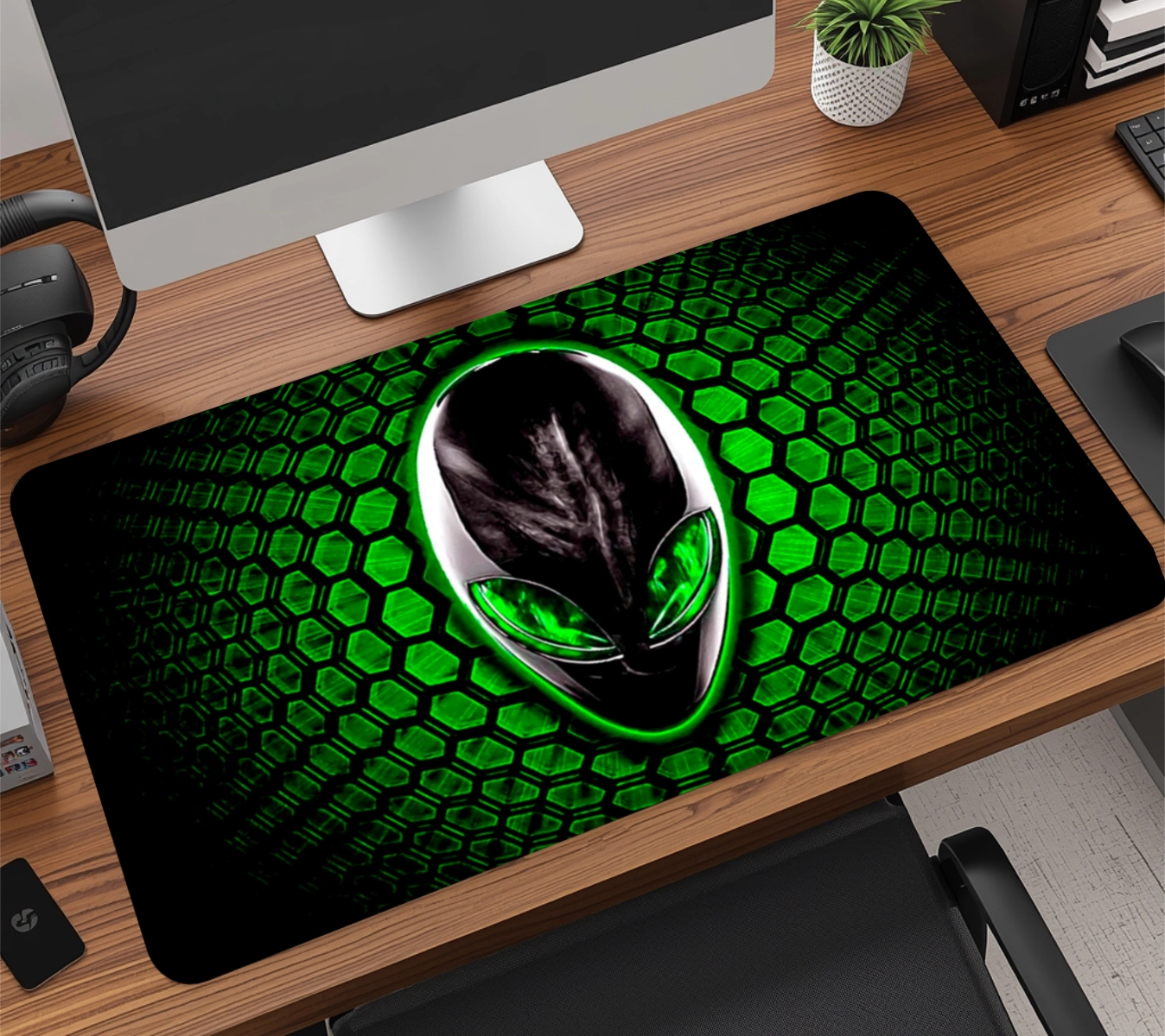 A base em borracha natural de alta densidade com textura anti-derrapante garante aderência total à mesa, evitando qualquer tipo de movimentação indesejada, mesmo durante jogadas rápidas. É esse material que faz o mousepad durar muito mais do que os modelos comuns do mercado.