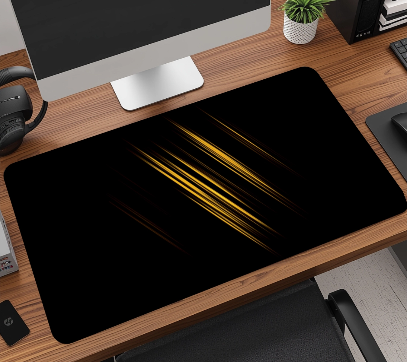A base em borracha natural de alta densidade com textura anti-derrapante garante aderência total à mesa, evitando qualquer tipo de movimentação indesejada, mesmo durante jogadas rápidas. É esse material que faz o mousepad durar muito mais do que os modelos comuns do mercado.