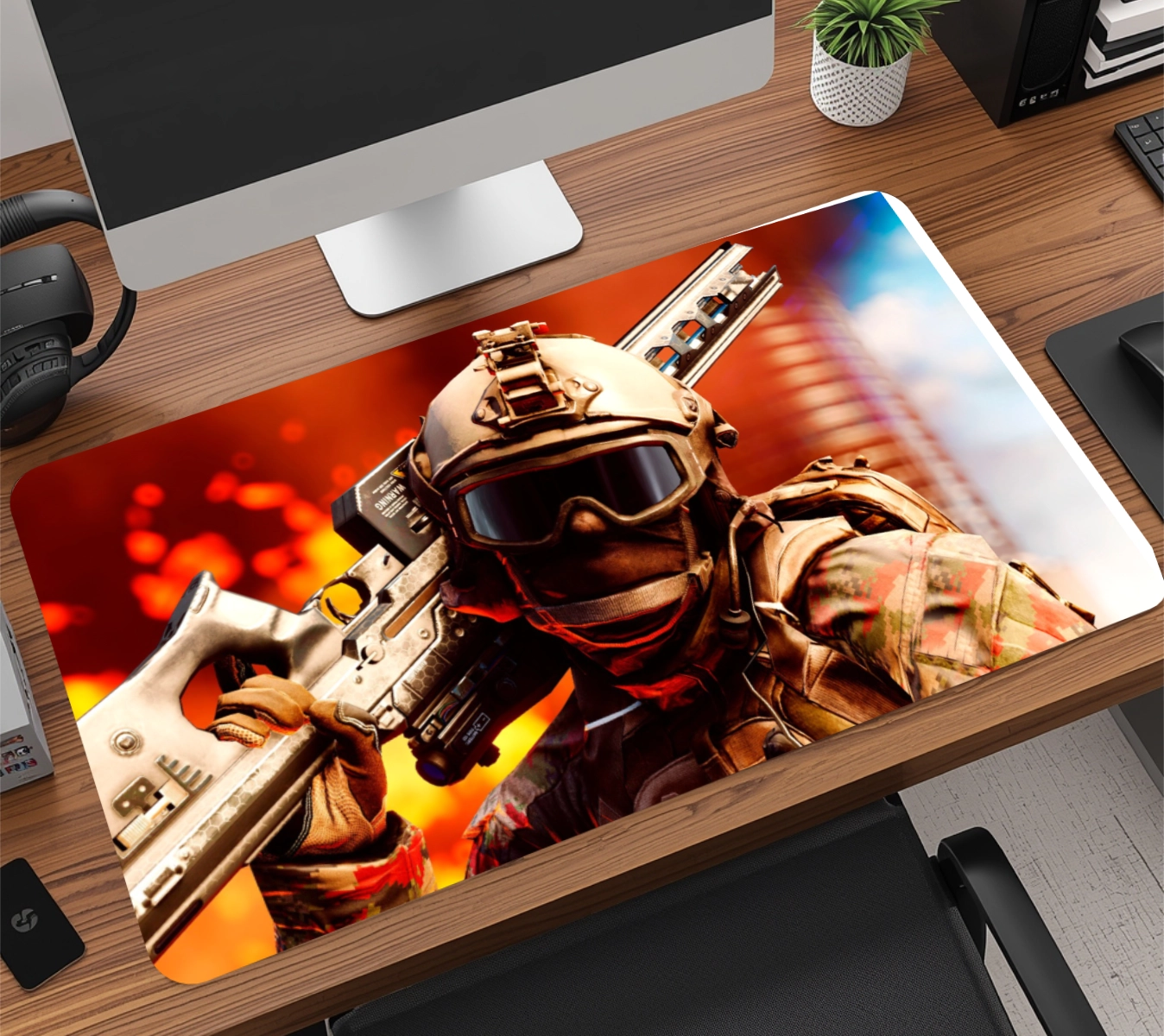 A base em borracha natural de alta densidade com textura anti-derrapante garante aderência total à mesa, evitando qualquer tipo de movimentação indesejada, mesmo durante jogadas rápidas. É esse material que faz o mousepad durar muito mais do que os modelos comuns do mercado.