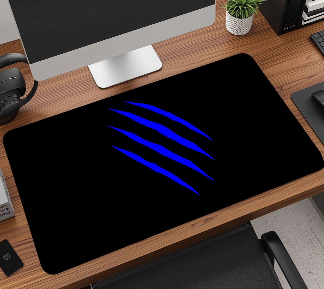 A base em borracha natural de alta densidade com textura anti-derrapante garante aderência total à mesa, evitando qualquer tipo de movimentação indesejada, mesmo durante jogadas rápidas. É esse material que faz o mousepad durar muito mais do que os modelos comuns do mercado.