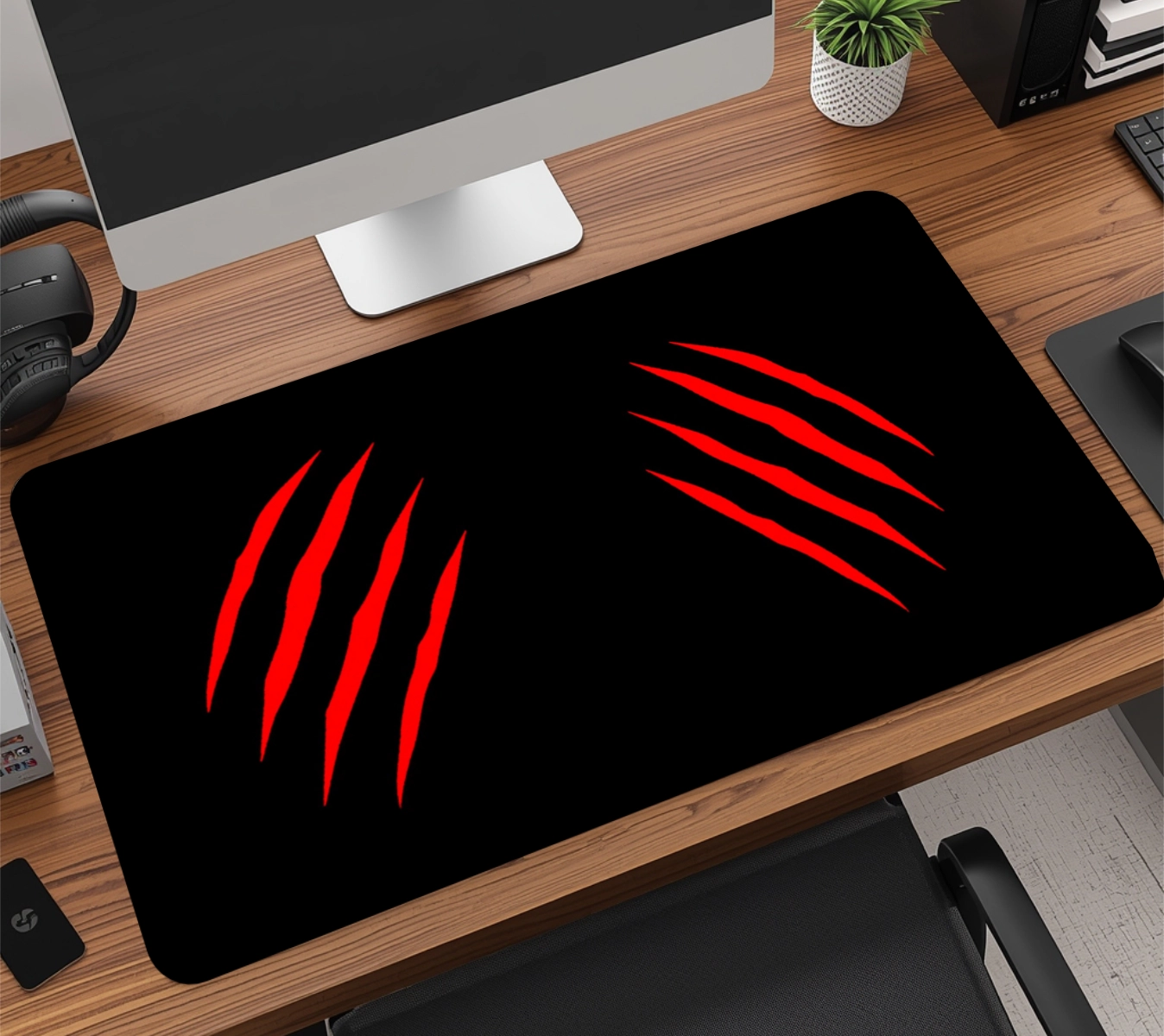 A base em borracha natural de alta densidade com textura anti-derrapante garante aderência total à mesa, evitando qualquer tipo de movimentação indesejada, mesmo durante jogadas rápidas. É esse material que faz o mousepad durar muito mais do que os modelos comuns do mercado.