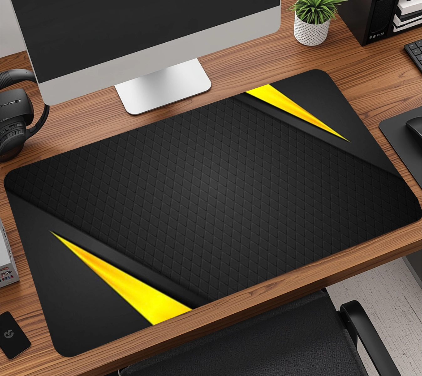 A base em borracha natural de alta densidade com textura anti-derrapante garante aderência total à mesa, evitando qualquer tipo de movimentação indesejada, mesmo durante jogadas rápidas. É esse material que faz o mousepad durar muito mais do que os modelos comuns do mercado.