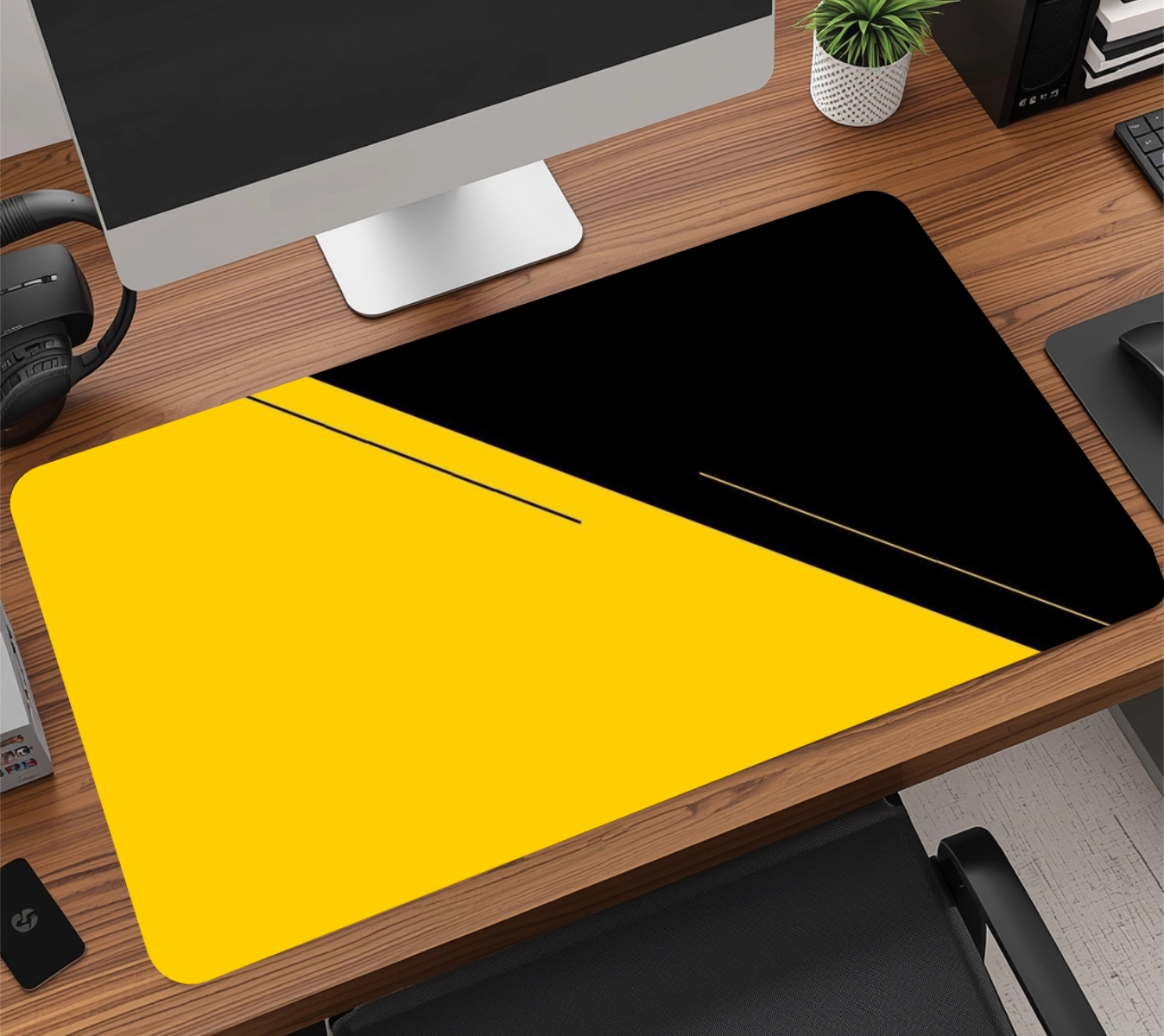A base em borracha natural de alta densidade com textura anti-derrapante garante aderência total à mesa, evitando qualquer tipo de movimentação indesejada, mesmo durante jogadas rápidas. É esse material que faz o mousepad durar muito mais do que os modelos comuns do mercado.