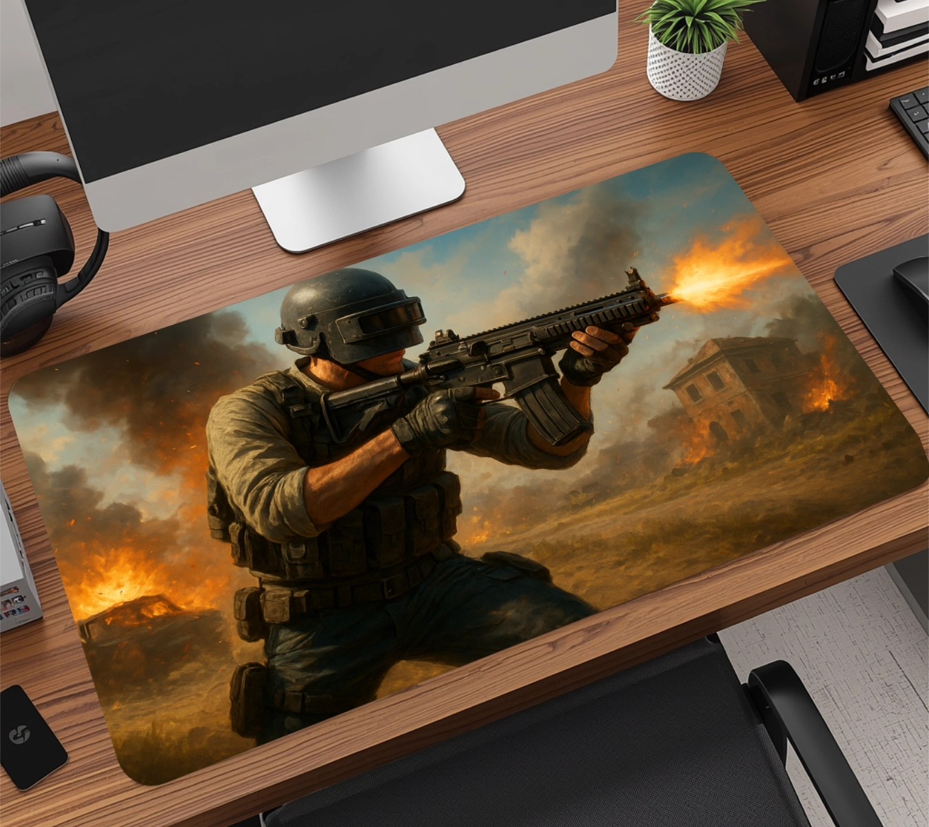 A base em borracha natural de alta densidade com textura anti-derrapante garante aderência total à mesa, evitando qualquer tipo de movimentação indesejada, mesmo durante jogadas rápidas. É esse material que faz o mousepad durar muito mais do que os modelos comuns do mercado.