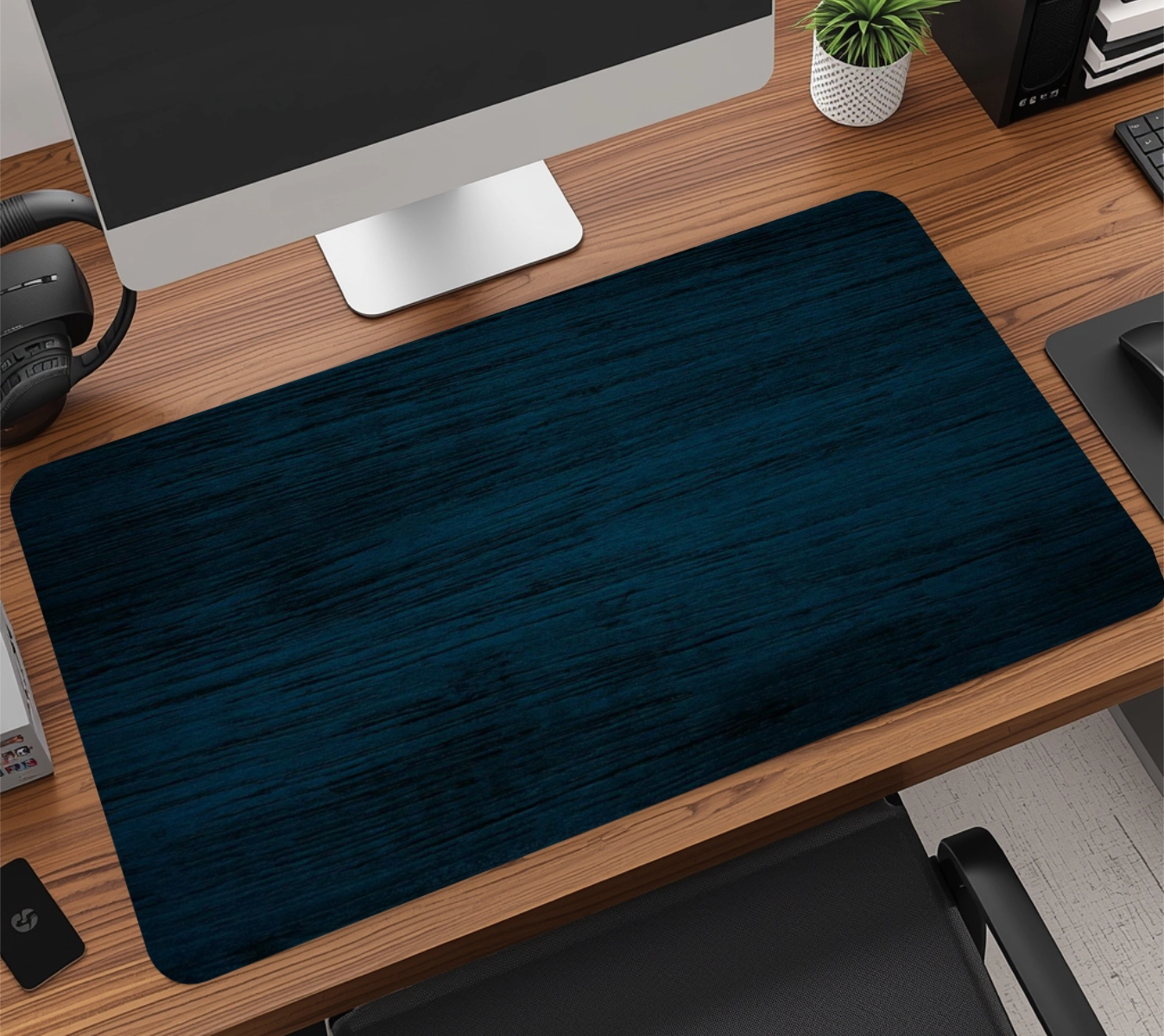 A base em borracha natural de alta densidade com textura anti-derrapante garante aderência total à mesa, evitando qualquer tipo de movimentação indesejada, mesmo durante jogadas rápidas. É esse material que faz o mousepad durar muito mais do que os modelos comuns do mercado.